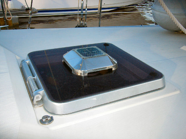 Pour aérer la cabine avant et le carré, nous avons posé des extracteurs solaires NICRO Powervent 3000, dont vous trouverez les caractéristiques dans le fichier PDF suivant : NICRO 3000