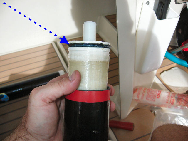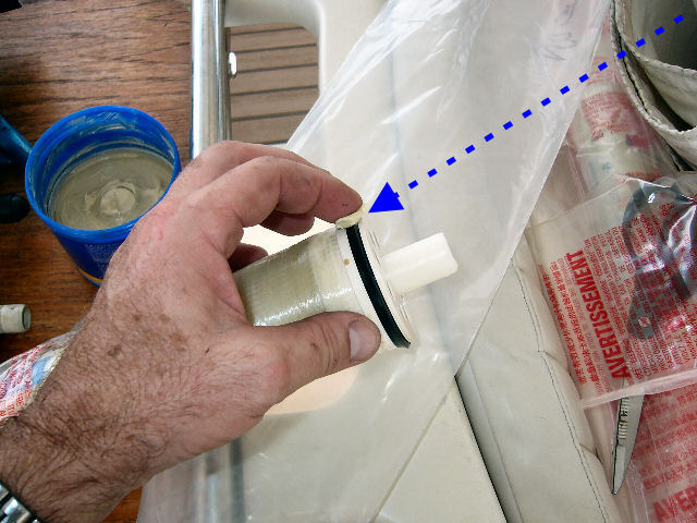 Le joint ne rentrera pas tout seul, même avec de la graisse. Il faut le faire pénétrer mm par mm avec un petit tournevis sans blesser le joint, sinon il y a un risque de fuite d'eau de mer dans l'eau douce (je l'ai vécu)