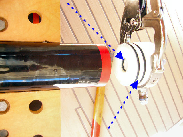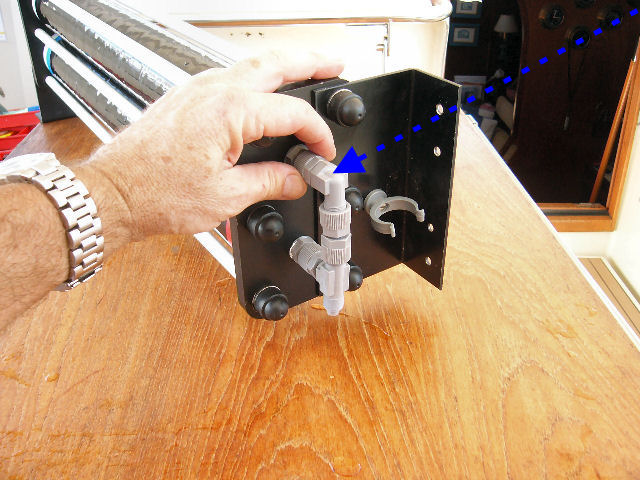 Remonter le porte-tubes sur le bateau et revisser au frein-filet les connexions coniques (voir flèche opération 15) sans serrer trop fort (surtout les connexions en plastique de l'eau douce). C'est fini