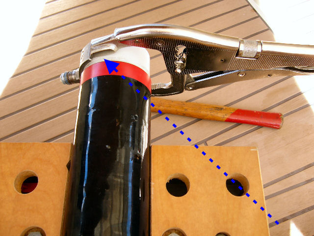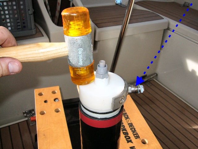 Avec un chasse-clou et un marteau, tapoter prudemment sur la tranche de la plateforme pour dégager la tête du tube sur 2 mm . C'est juste pour réveiller les joints O-ring