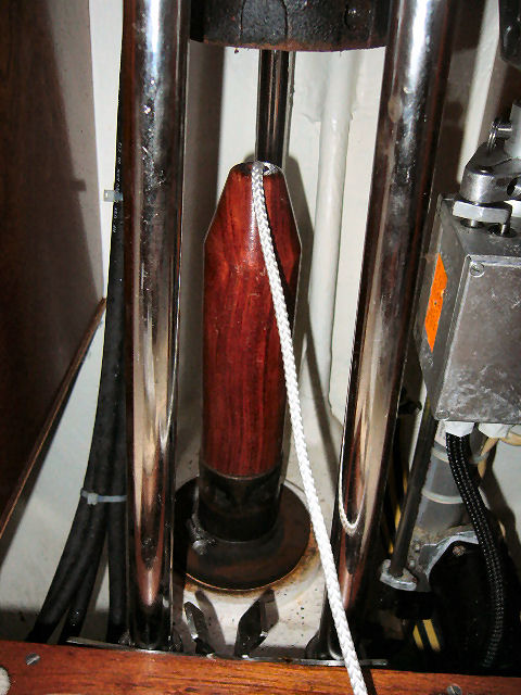 Le tube glisse doucement à l'eau. On est surpris par la proximité de l'eau (quelques centimètres). IMPORTANT procéder à cette manipulation dans des eaux calmes comme celles d'un port. Au mouillage, tout tangage important pourrait faire pénétrer de l'eau