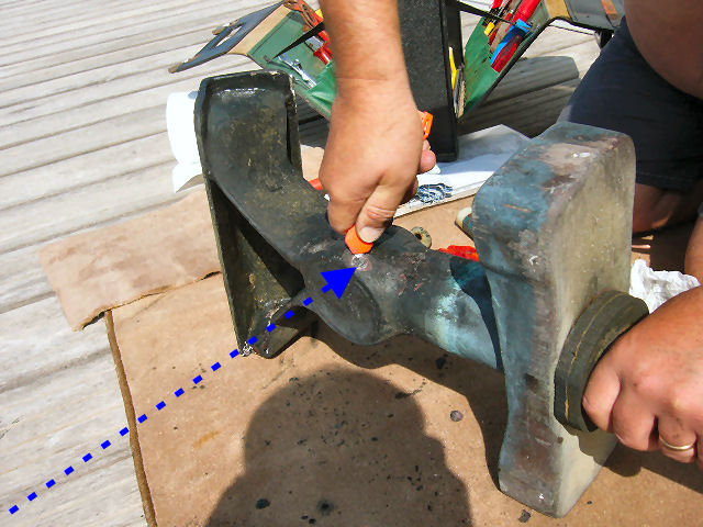 A ce stade, il est possible de changer l'hélice et de faire la vidange. Nous avons à réparer le renvoi d'angle interne. C'est la suite des opérations.