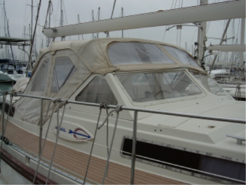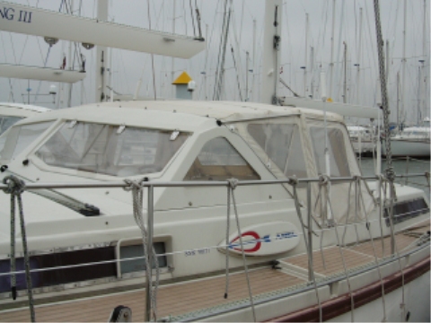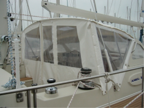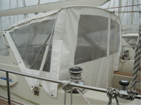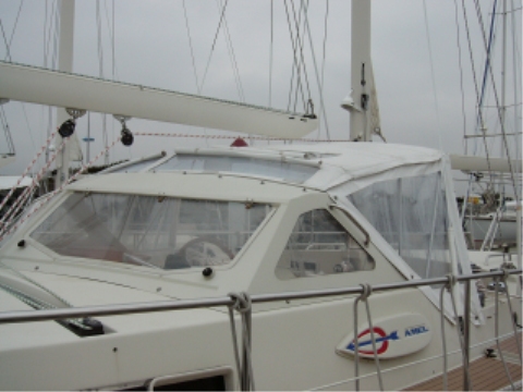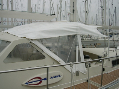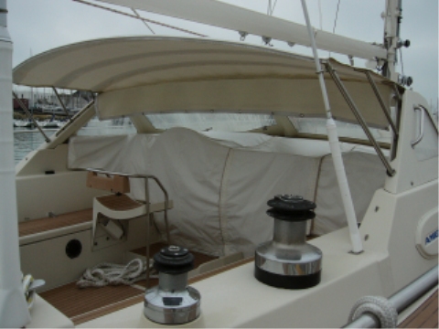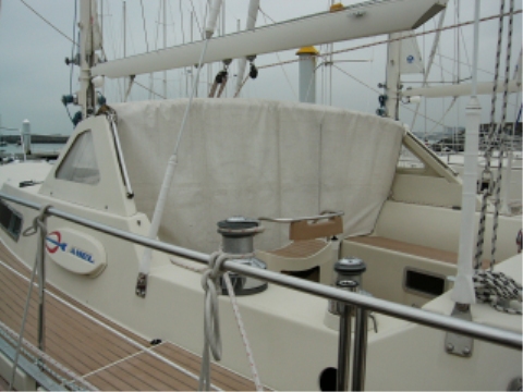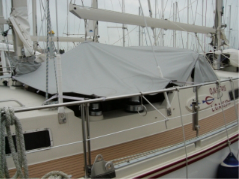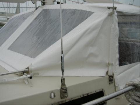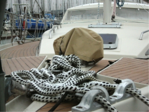 Mon attention est rapidement attirée par le nombre de capotes déployées alors que personnellement, je veille toujours à la ranger soigneusement lorsque je quitte le bateau.