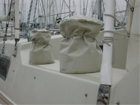 Si les tauds sont généralement en tissu plastifié, les housses doivent se faire en Dralon, pour ne pas enfermer l'humidité