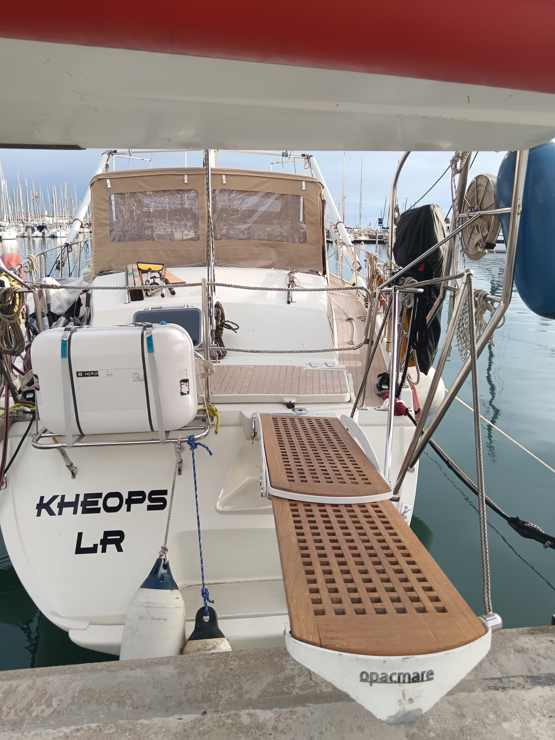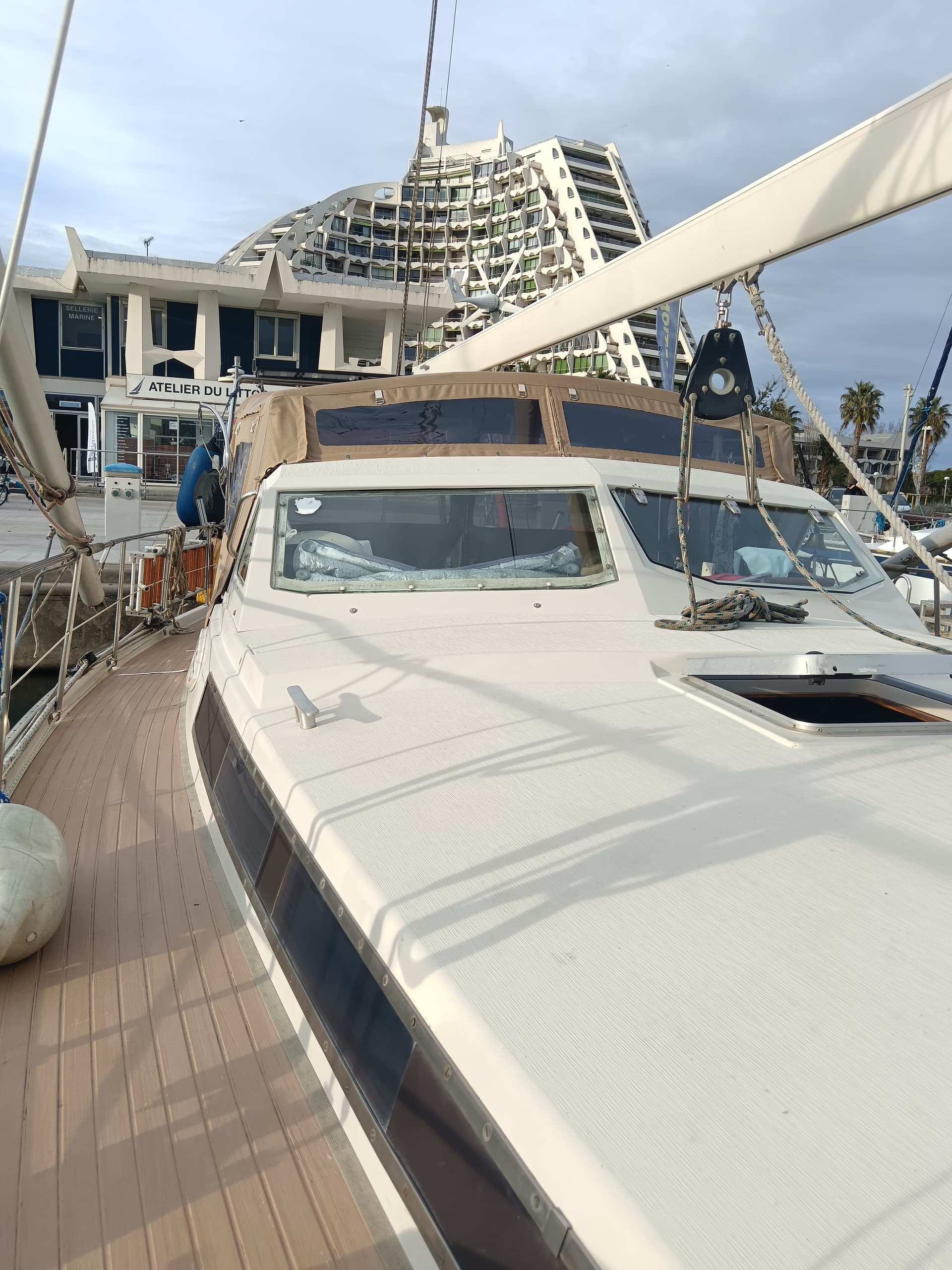 - Taud de fermeture de cockpit complet neuf en Sunbrella + taud de soleil Serge Ferrari micro-perforé, arceau rehaussé (on tient debout dans le cockpit) sur mesure Août 2025