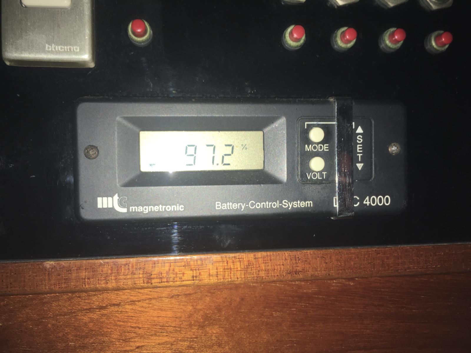 Il faut vérifier l’afficheur testeur de batteries. J’ai eu ce problème. Si le voltage est encore raisonnable, il faut vérifier le testeur. Ceux qui sont installés sur les Amel de 1997 peuvent être ré étalonnés. Voir la doc. Sinon je l’ai.