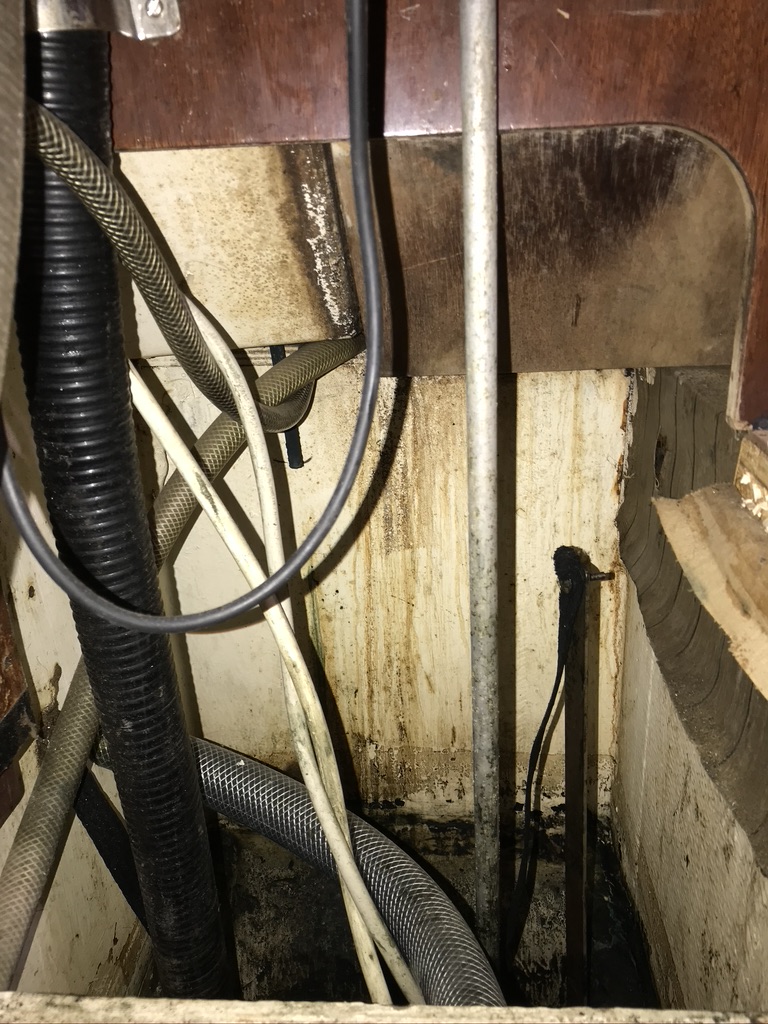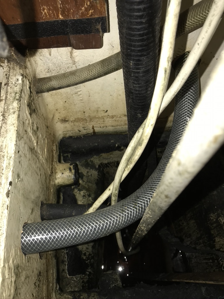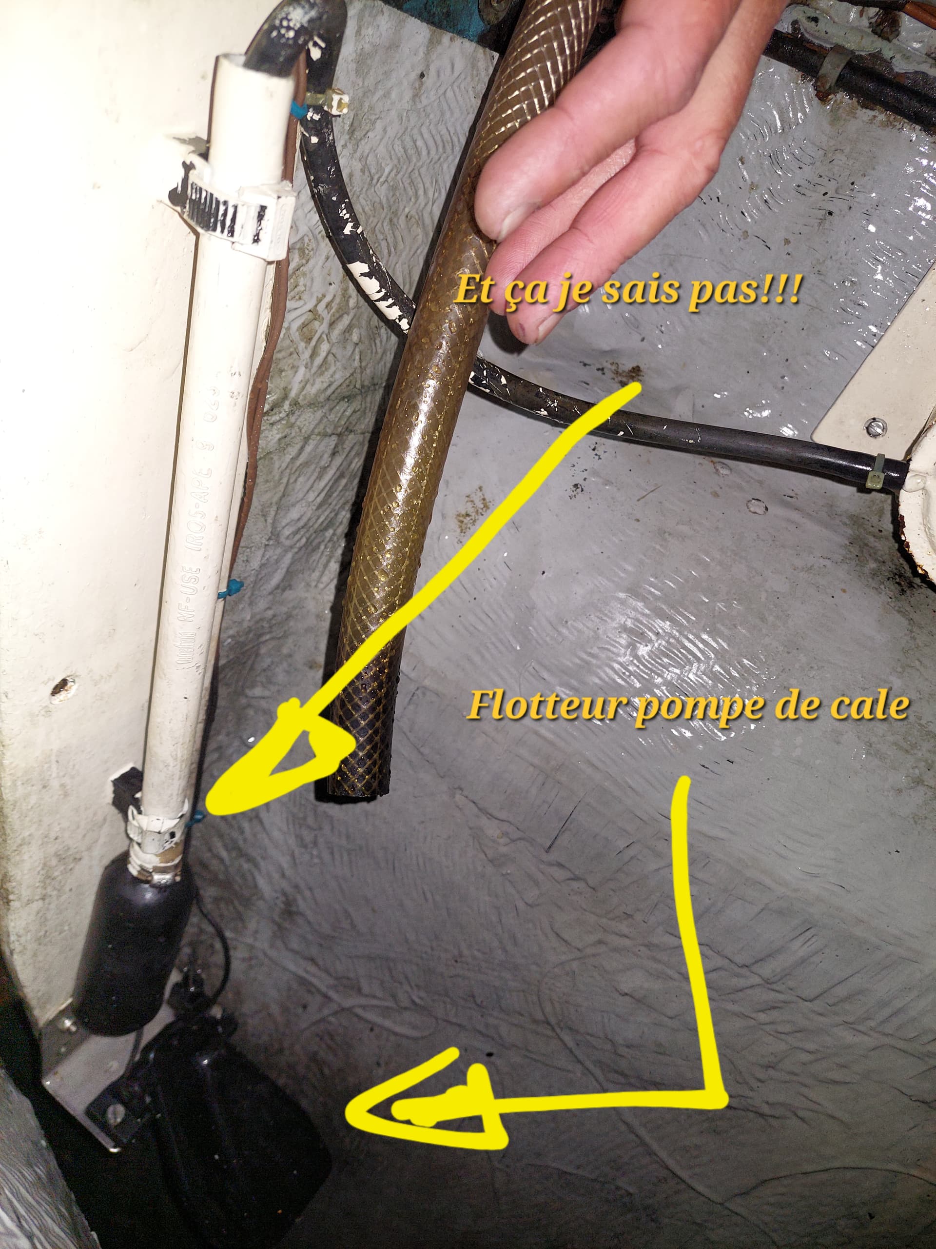 Quand j’ai acheté le bateau il y avait ce système mais qui n’était plus en fonction et une pompe avec un flotteur était dans le puisard. C’était vraiment mal foutu. J’ai tout viré.
